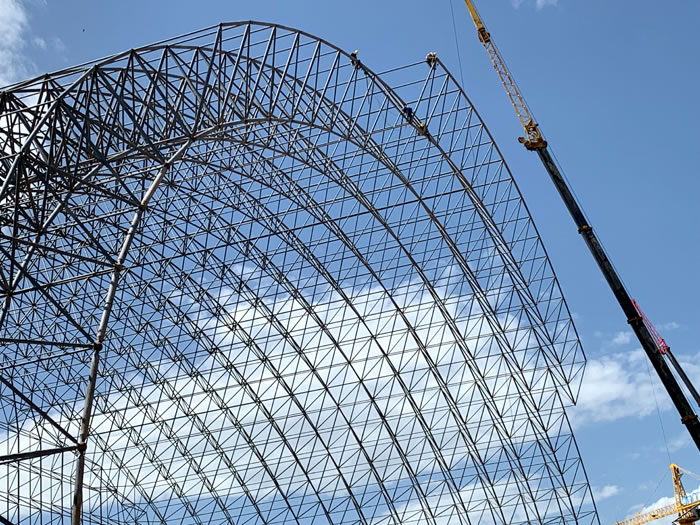 (2)网架加工前应对现场尺寸进行复测,确认无误后方可进行加工、安装;网架制作、运输、安装应遵守《空间网格结构技术规程》JGJ7-2010、《钢网架瑞安螺栓球节点》JG/T 10-2009、《钢网架瑞安螺栓球节点用高强度螺栓》 GB/T 16939-2016、《瑞安钢结构瑞安工程瑞安施工规范》 GB50755-2012、《瑞安钢结构瑞安工程瑞安施工质量验收标准》 GB50205-2020。
